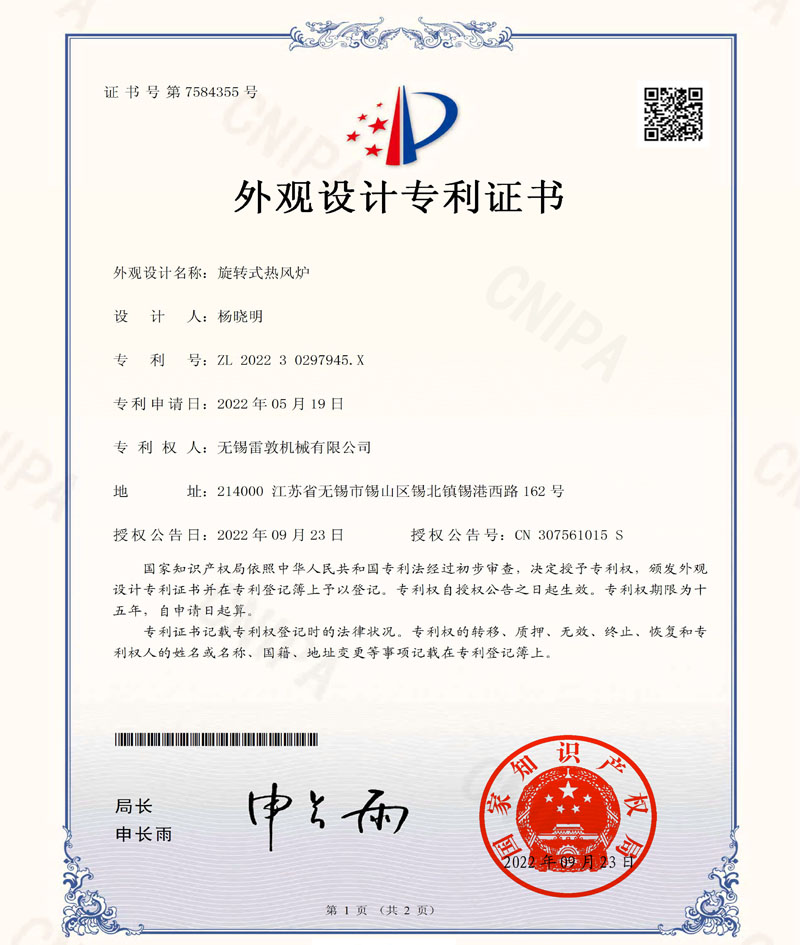 雷敦憑借多年技術沉淀與創新精神,在新品研發的道路上積極進取,先后獲得多項實用新型專利證書和外觀設計專利證書。